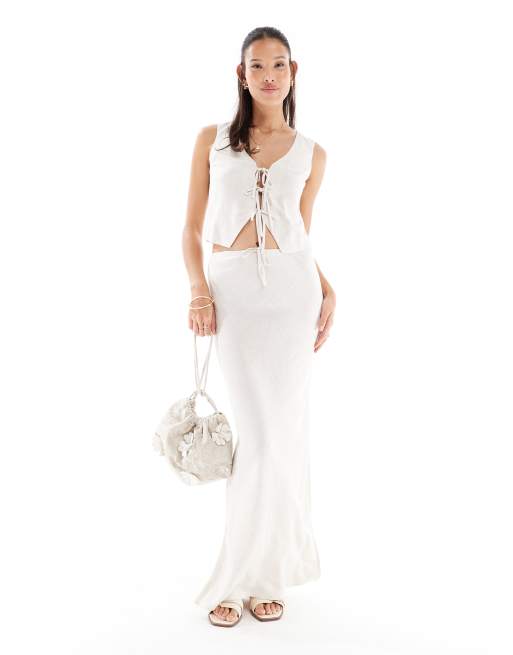 Miss Selfridge – Leinenmix-Maxirock in Steinbeige mit Schrägschnitt