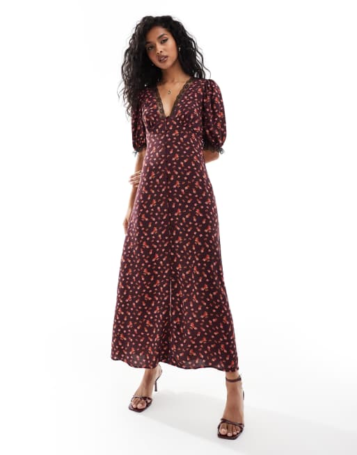 Miss Selfridge – Maxi-Freizeitkleid in Burgunderrot mit Blumenmuster