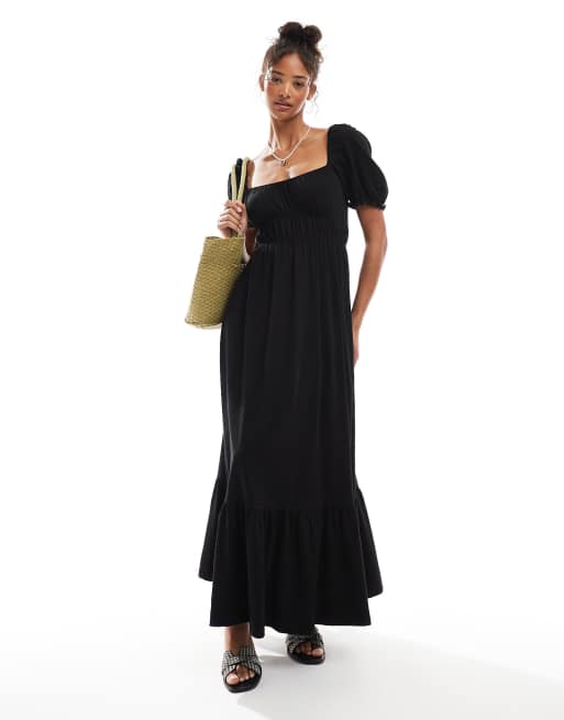 Miss Selfridge – Maxikleid mit Puffärmeln in Schwarz