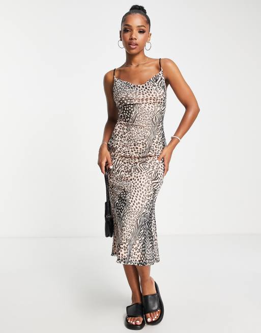 Miss Selfridge – Midikleid aus Netzstoff mit Animalprint