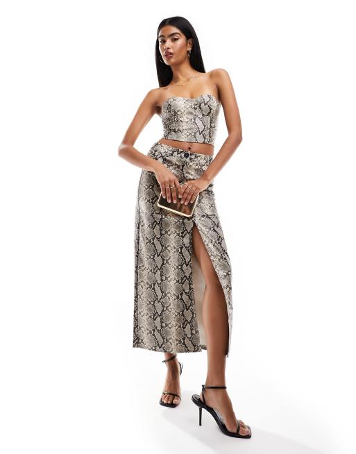 Miss Selfridge – Midirock aus Kunstleder mit Schlangenmuster, Kombiteil