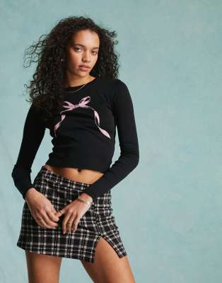 Miss Selfridge – Mini-Skort aus Ponté in kariertem Schwarz