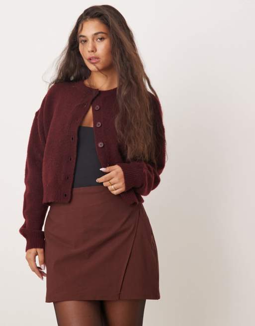 Miss Selfridge – Mini-Wickelskort aus Bengaline in Schokobraun