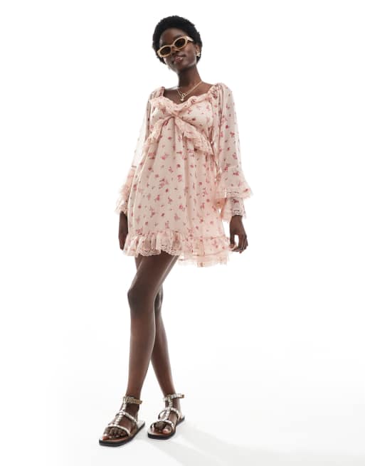 Miss Selfridge – Minikleid aus Chiffon mit Rüschen