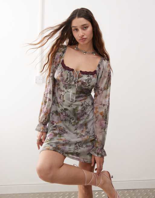 Miss Selfridge – Minikleid mit Bindedetail und Blumenprint