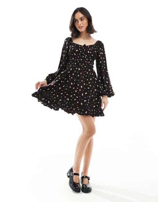 Miss Selfridge – Minikleid mit Blumenprint und Raffung in der Taille