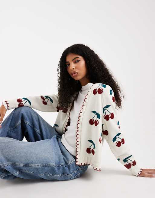 Miss Selfridge – Offene Strickjacke mit Kirschmuster