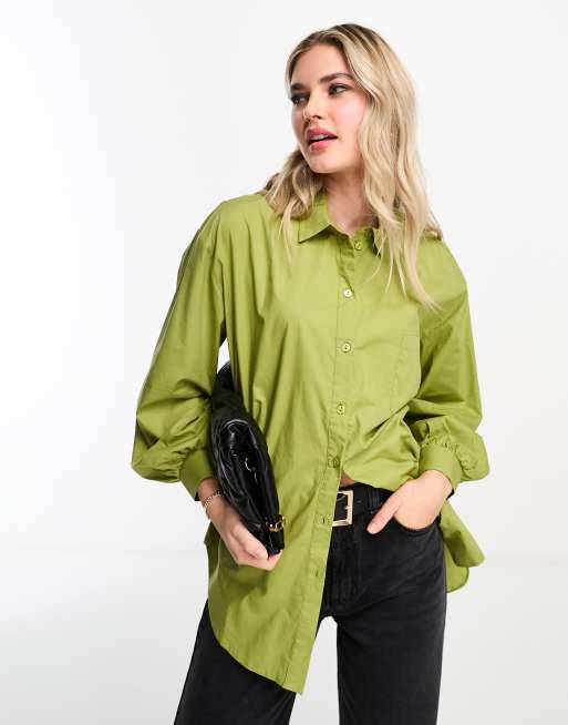 Miss Selfridge – Oversize-Hemd aus Popeline in Khakigrün