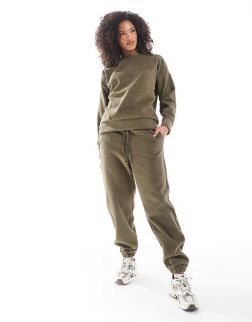 Miss Selfridge – Oversize-Jogginghose in Khaki mit Fleece-Futter