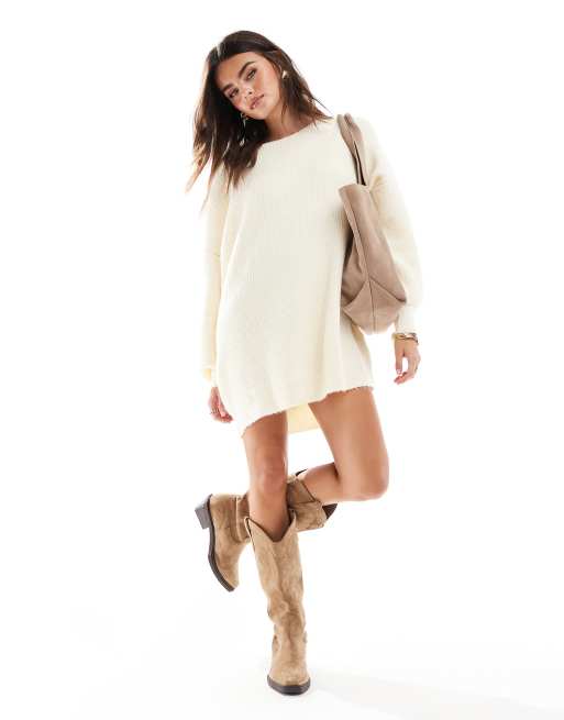 Miss Selfridge – Oversize-Minikleid aus Strick in Cremeweiß mit Schlitzausschnitt