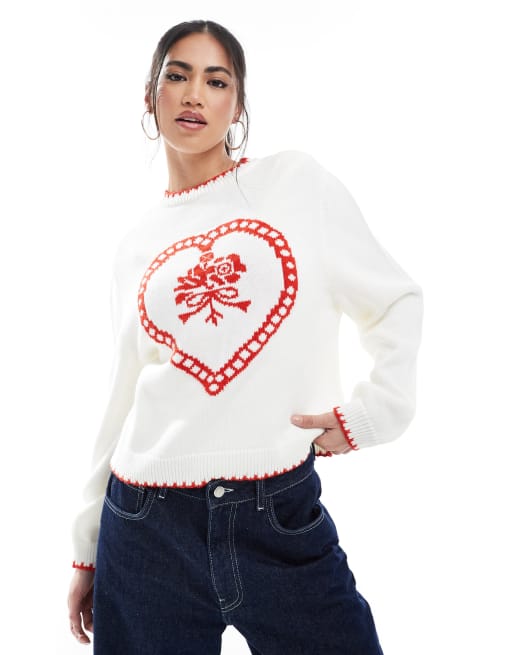 Miss Selfridge – Oversize-Strickpullover mit Herzmotiv und Languettenstich