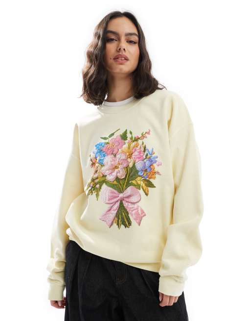 Miss Selfridge – Oversize-Sweatshirt in Gelb mit Blumenstrauß-Print