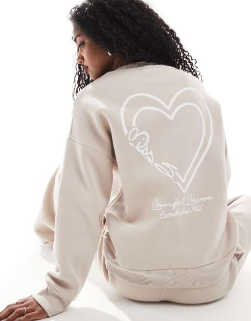 Miss Selfridge – Oversize-Sweatshirt in Steinbeige mit Logo-Schaumprint, Kombiteil