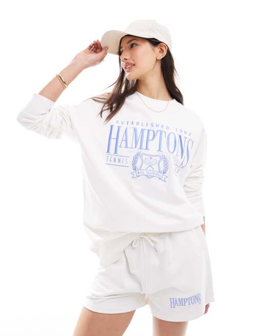 Miss Selfridge – Oversize-Sweatshirt in Weiß mit „Hamptons“-Schriftzug, Kombiteil