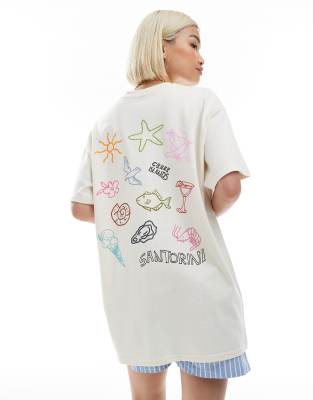 Miss Selfridge – Oversize-T-Shirt in Buttergelb mit „Santorini“-Grafik im Girlie-Design