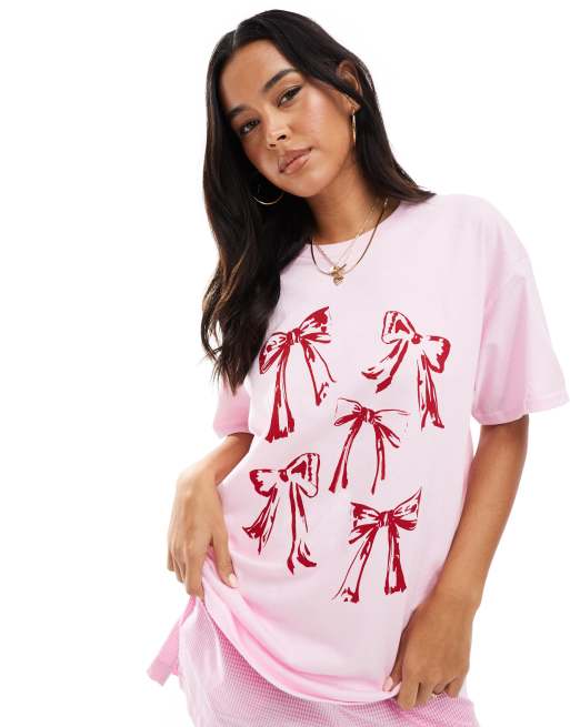 Miss Selfridge – Oversize-T-Shirt in Rosa mit Schleifenprints