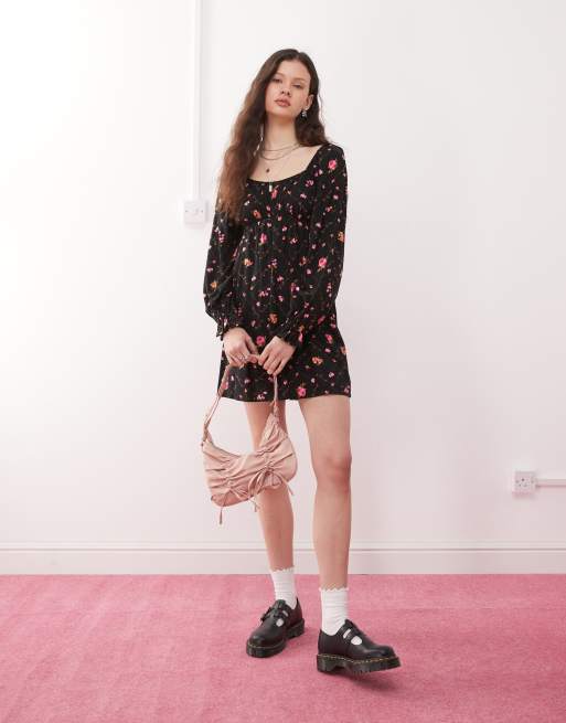 Miss Selfridge Petite – Kurzes, langärmliges Freizeitkleid mit Blümchenmuster