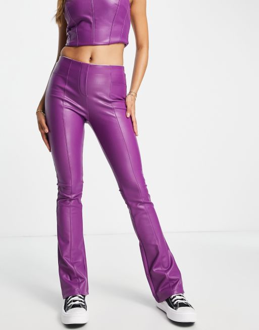 Miss Selfridge – Schlaghose aus Kunstleder in Lila