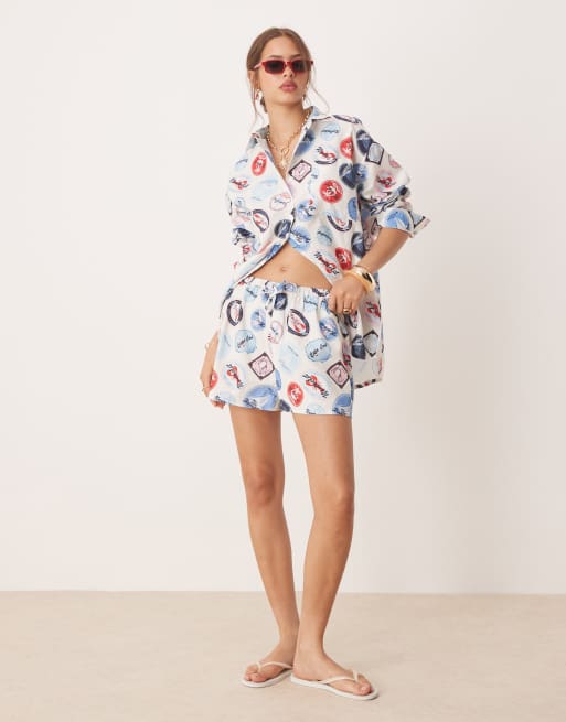Miss Selfridge – Shorts mit Urlaubsprint, Kombiteil