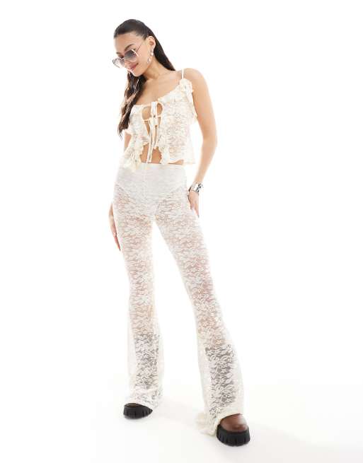 Miss Selfridge – Strand-Schlaghose aus transparenter Spitze