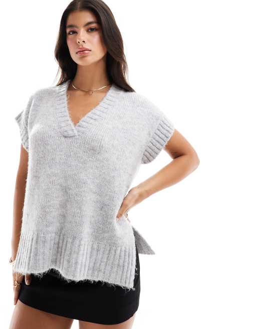 Miss Selfridge – Strick-Trägertop in Grau meliert