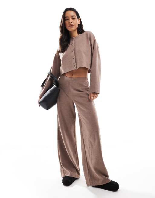 Miss Selfridge – Strickjacke in der Farbe Pilzbraun mit weicher Haptik, Kombiteil