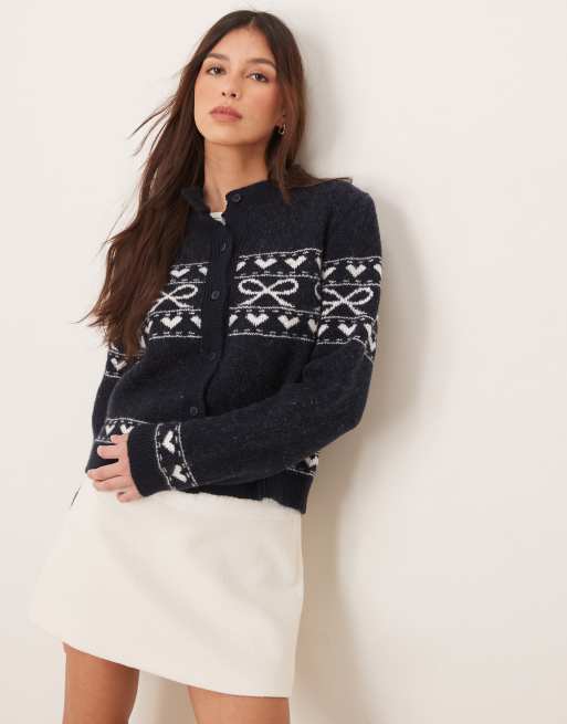 Miss Selfridge – Strickjacke in Marineblau mit Schleifen-Strickmuster