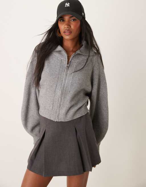 Miss Selfridge – Strickjacke in zartem Grau mit Reißverschluss und Kragendetail