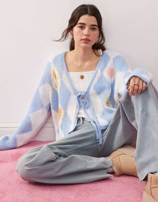 Miss Selfridge – Strickjacke mit Blumenmuster und Bindedetail vorne