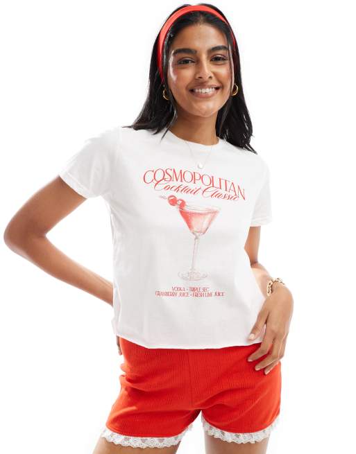 Miss Selfridge – T-Shirt in Weiß mit „Cosmopolitan Cocktail“-Print
