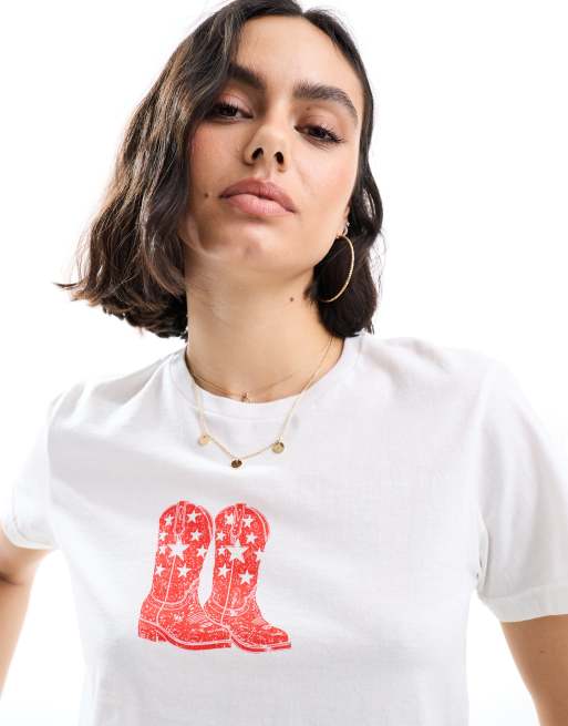 Miss Selfridge – T-Shirt in Weiß mit Cowgirl-Grafik