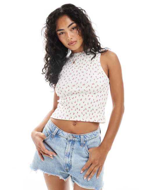 Miss Selfridge – Trägertop mit Ringerrücken und rosa Blümchenmuster