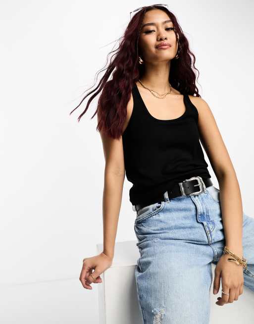 Miss Selfridge – Weiches, geripptes Longline-Trägertop in Schwarz