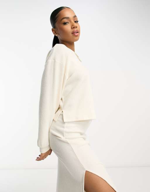 Miss Selfridge – Weiches, geripptes Oberteil in Hellbeige, Kombiteil