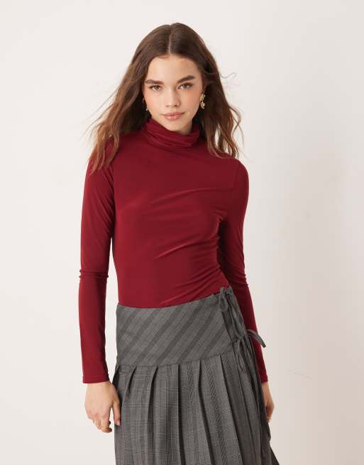 Miss Selfridge – Weiches Oberteil in Burgunderrot mit Rollkragen