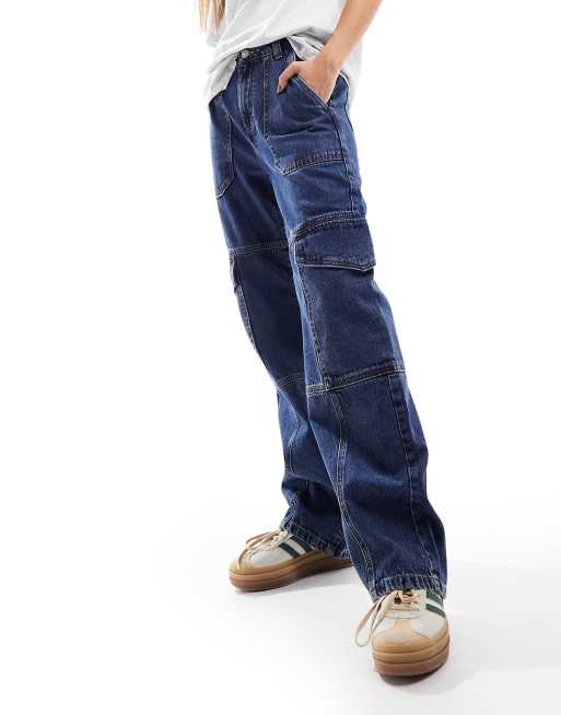 Miss Selfridge – Weit geschnittene Cargo-Jeans in dunkler Indigo-Waschung