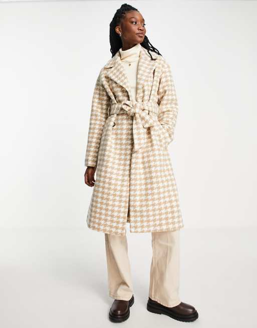Miss Selfridge – Wickelmantel mit kariertem Hahnentrittmuster