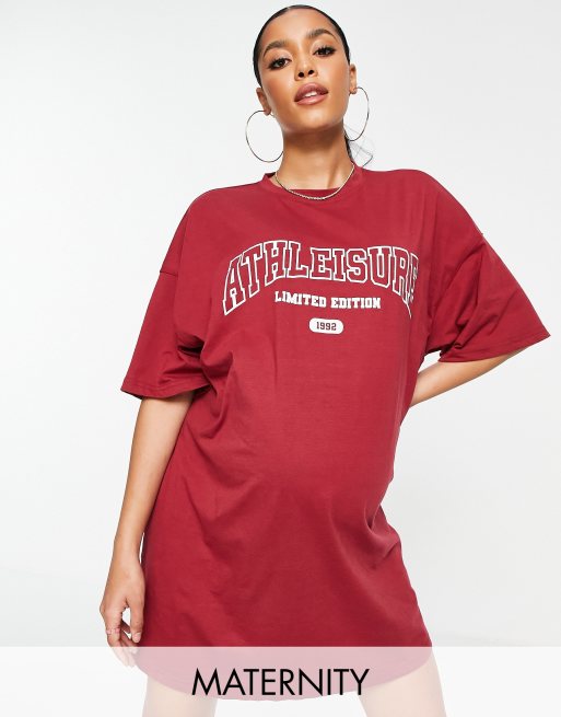 Missguided Maternity – T-Shirt-Kleid in Burgunder mit Athleisure-Grafik