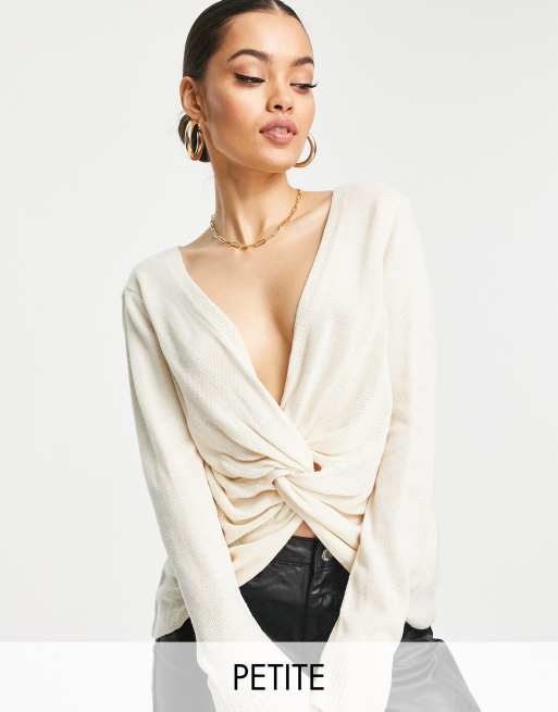 Missguided Petite – Pullover aus Strick in Creme mit Zierknoten vorne