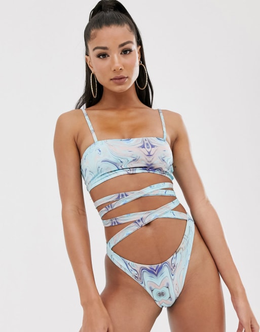 Missguided – Bikini mit geradem Ausschnitt und Wirbelmuster