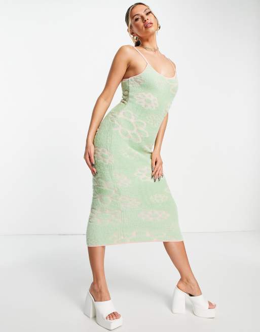 Missguided – Flauschiges Midaxi-Kleid in Mintgrün mit Gänseblümchen