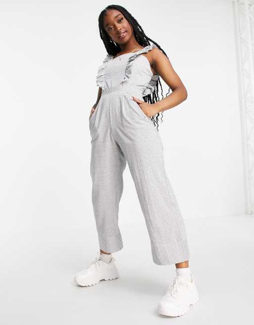 Missguided – Gestreifter Jumpsuit mit Rüschenfront