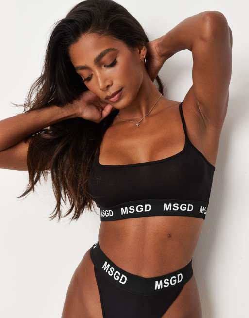 Missguided – Jersey-Bustier in Schwarz mit Logoband