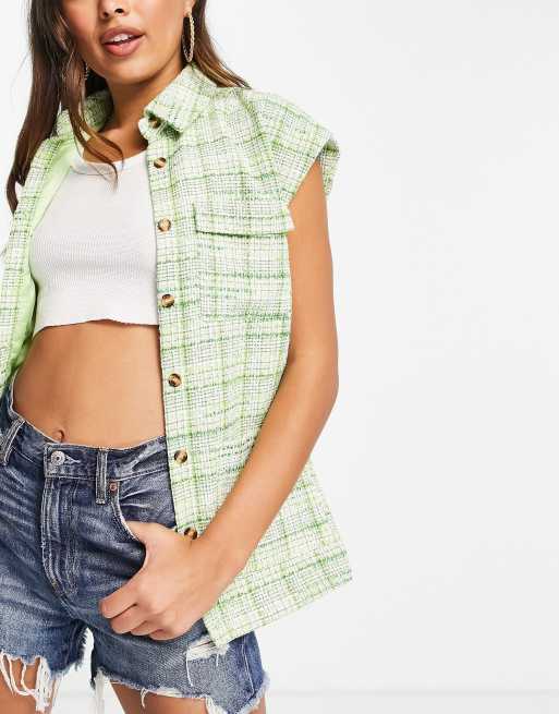 Missguided – Karierte Tweed-Weste in Grün, Kombiteil