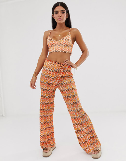 Missguided – Kurzes Oberteil und Hose mit Zickzack-Print, Kombiteil