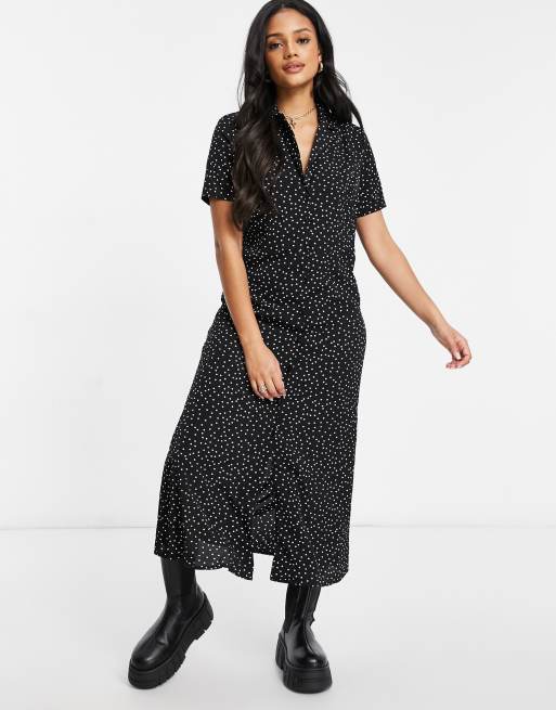 Missguided – Midi-Hemdkleid mit durchgehender Knopfleiste und Tupfen-Design