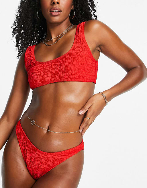 Missguided – Mix and Match – Bikini im Knitterlook in Rot