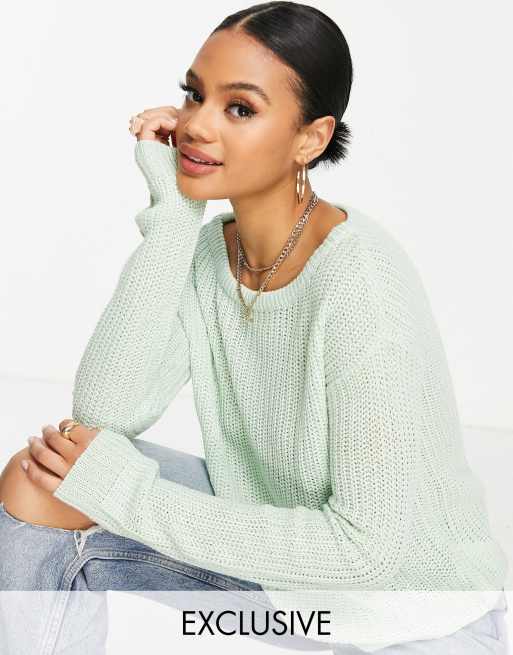 Missguided – Schulterfreier Pullover in Salbeigrün - LGREEN
