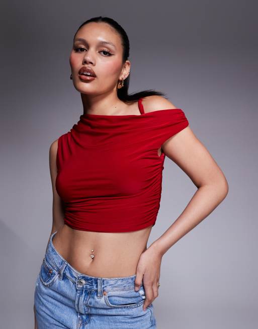 Missy Empire – Anschmiegsames Oberteil in Rot mit verdrehtem Träger