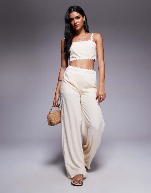 Missy Empire – Set in beiger Leinenoptik mit Bogenkante, aus Oberteil mit eckigem Ausschnitt und weit geschnittener Hose